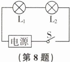 8. 如图所示,灯泡$L_{1}和L_{2}$上分别标有“6V 4W”和“3V 1W”字样,将它们串联后接在电压可在3~6伏范围内调节的电源上,闭合开关S,若两灯的灯丝电阻不随温度变化,在调节电源电压的过程中 (