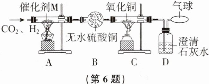 6. (2024秋·杭州市拱墅区期末)兴趣小组的同学们通过查阅资料发现,在一定温度下$,CO_2$和$H_2$在催化剂M的作用下可反应生成CO和$H_2O,$于是,他们通过实验来验证此反应规律。