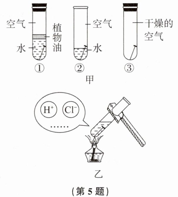 5. (2024秋·宁波市北仑区期末)如图甲所示为探究铁钉锈蚀条件的实验,如图乙所示为用稀盐酸除铁钉表面铁锈的实验。