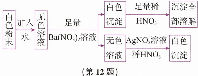12. 有一包白色粉末,可能由硫酸铜、氯化钠、碳酸钠、硫酸钠中的一种或几种组成,为检验其中的成分,按如图所示的流程进行实验: