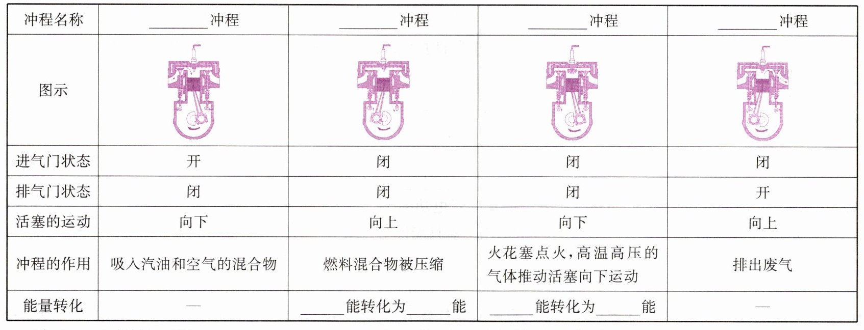 第一行:吸气 压缩 做功 排气