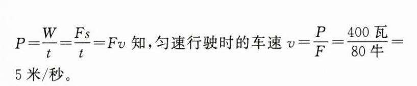 (2)因电动自行车在水平路面上匀速行驶时处于平衡状态,受到的牵引力和阻力是一对平衡力,所以,电动自行车受到的牵引力 $ F = f = 0.08G = 0.08 × 1000 $ 牛 $ = 80 $ 牛,匀速行驶 $ 10 $ 千米过程中克服阻力做的功 $ W = Fs = 80 $ 牛 $ × 10 × 10^{3} $ 米 $ = 8 × 10^{5} $ 焦。