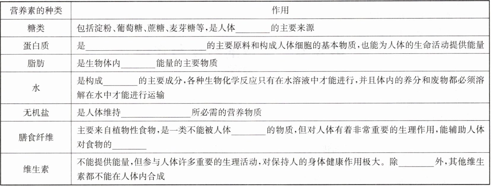 所需能量 细胞生长及组织修复 贮藏 细胞 正常生理活动 消化吸收 消化和吸收 维生素 D