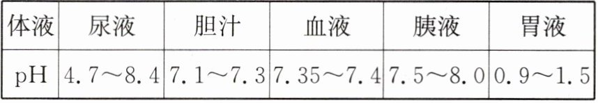 7. 为维持人体正常的生命活动,人体不同器官内的体液具有不同的酸碱性,如表所示为部分体液的pH范围。由表格数据可知,在正常情况下,下列说法中,不正确的是(
