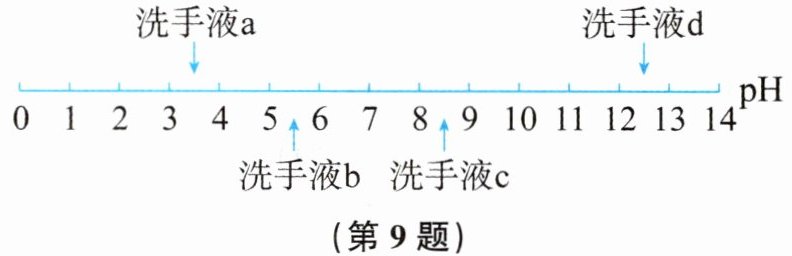 9. 不同品牌洗手液的pH一般不同,如图所示为四种洗手液的pH。下列说法中,正确的是(