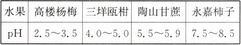3. 温州市气候宜人,盛产各种酸甜爽口的水果,深受人们喜爱,表中酸性最强的水果是(