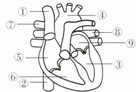 (1)如图所示为心脏结构示意图,请写出图中各序号表示的结构名称: