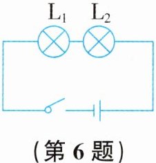 6. 如图所示,小灯泡$L_{1}$、$L_{2}$串联在电路中,闭合开关后,发现灯$L_{1}$较暗,灯$L_{2}$较亮,下列分析中,正确的是(