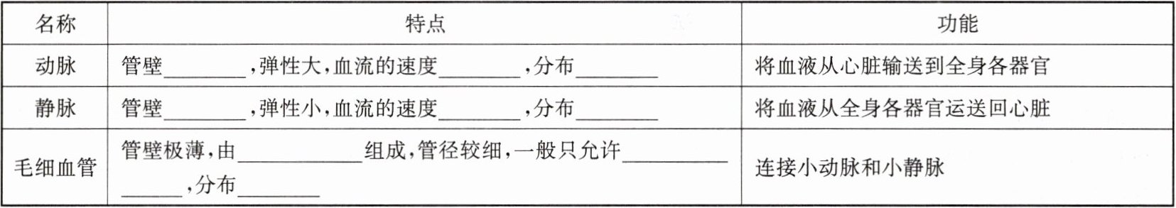 )(2)血液在血管中只能按动脉→毛细血管→静脉的方向流动。(