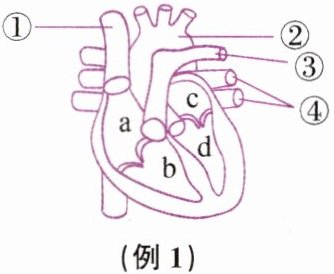 D. 心脏内血液流动途径为b→a,c→d