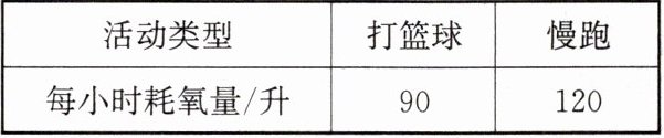 C. 打篮球是激烈运动,耗氧量应更大,故该表测得的数据错误