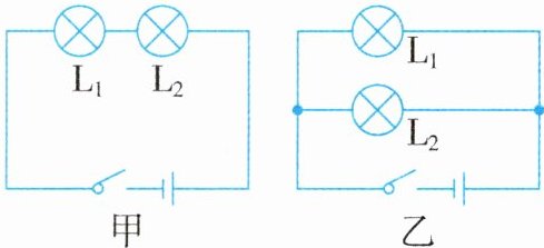 例2 (2024秋·衢州市期末)如图所示,电源电压恒为6伏,两灯泡$L_{1}和L_{2}$的规格分别为“6V 3W”和“6V 6W”,假定灯丝电阻不变,按甲、乙方式连接,接通电路后最亮的是 (