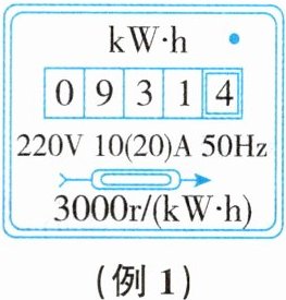 例1 (2024秋·台州市温岭市期末)小明将家里其他用电器关闭,只开启一个用电器,测出1分钟时间内电能表上的转盘转过了50转,该电能表的表头如图所示,则小明的实验过程中开着的用电器可能是 (