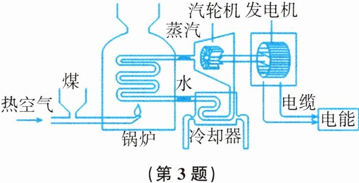 3. 如图所示为某火力发电站结构示意图,火力发电,“吃”进去的是煤,“吐”出来的是电,在这个过程中,能量的转化是(