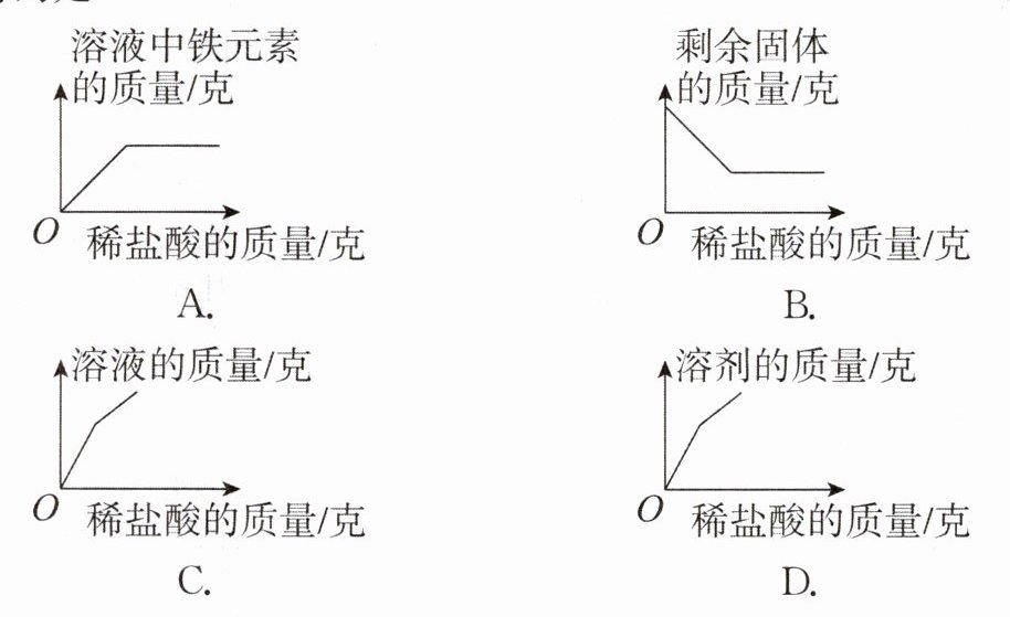 图像能直观体现科学中的各种变化关系,可以加深我们对科学知识的理解。向盛有一定量氧化铁粉末的烧杯中不断加入稀盐酸,下列图像中,与烧杯中相关量的变化