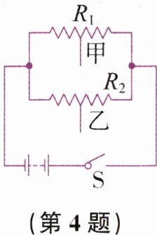 4. 如图所示的电路中,两个发热电阻$R_{1}\lt R_{2}$,它们并联在同一电源上时,闭合S后,关于被凡士林粘住的相同火柴甲、乙,下列说法中正确的是(