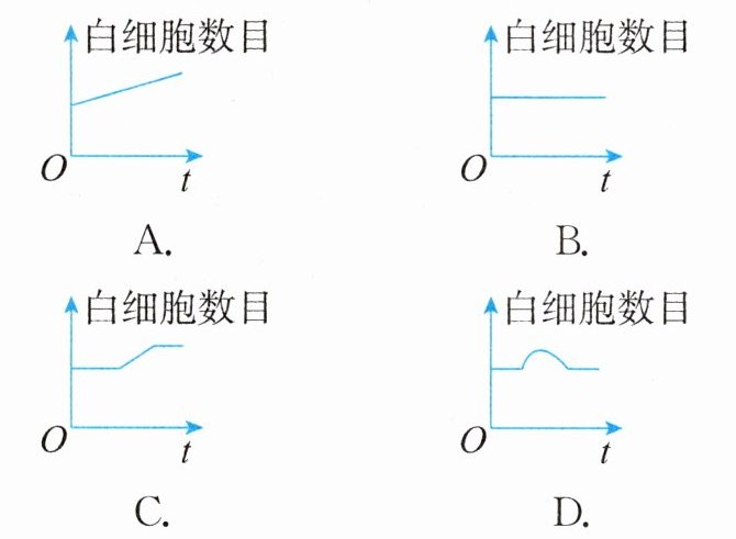 11. 医生诊断后确定某患者为急性炎症,然后对他进行消炎治疗,没过多久患者就痊愈了。下列选项中,能正确表示该患者体内白细胞数目变化的图像是 (