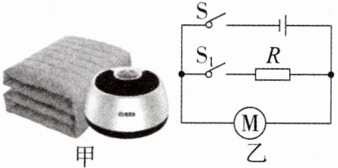 - 典例4:(2024秋·宁波市海曙区期末)图甲的水热毯由主机和毯体组成,采用水电分离的设计。毯体内的固定水管与主机相连。水经过主机加热至设定温度,并由水泵推动,在水管中循环来实现取暖功能。主机内部的工作电路简化后如图乙所示,其中$R$为电热丝,$M$为水泵,$S_{1}$为智能开关,下列说法中,正确的是()