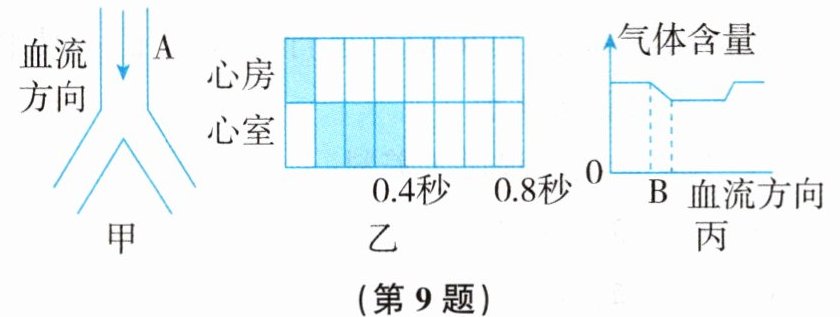 )A. 图丙中,如果曲线代表二氧化碳含量的变化,则血管B表示肺泡周围的毛细血管