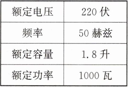 (1)由$P = \frac{U^2}{R}$可得该电热水壶正常工作时的电阻$R = \frac{U_{额}^2}{P_{额}} = \frac{(220伏)^2}{1000瓦} = 48.4$欧。