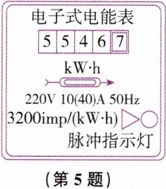 (3)3200次/千瓦时表示电路中每消耗1千瓦时的电能时,指示灯闪烁3200次,指示灯闪烁96次,电热水壶消耗的电能$W = \frac{96}{3200}$千瓦时$ = 0.03$千瓦时,则电热水壶的实际功率$P = \frac{W}{t} = \frac{0.03千瓦时}{\frac{2}{60}时} = 0.9$千瓦$ = 900$瓦。