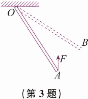3. (2024·杭州市上城区期中)如图所示,一根木棒在一个始终竖直向上的拉力$F的作用下绕转轴O$自由转动(不计摩擦),使木棒的下端由$A处缓慢地抬升到B$处。这一过程中,拉力$F$的大小变化是(