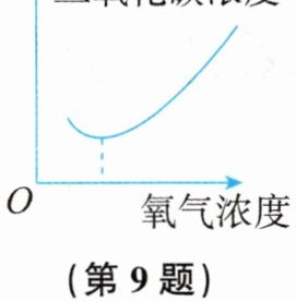 9. 如图所示为储藏新鲜水果时二氧化碳浓度与氧气浓度之间的关系图像,下列关于有氧呼吸、无氧呼吸的说法,正确的是 (
