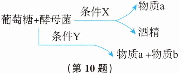 10. 如图所示为酵母菌呼吸作用的示意图。下列说法中,正确的是 (