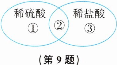 9. 物质的结构决定性质。稀硫酸和稀盐酸的结构关系如图所示。图中的②位置表示稀硫酸和稀盐酸共有的结构成分是