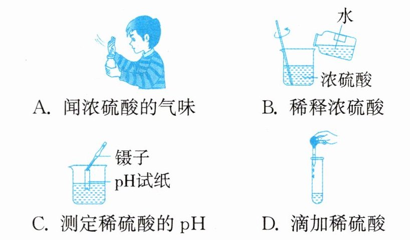 1. 小明为了探究硫酸的性质,进行了一系列实验,下列操作中,正确的是(