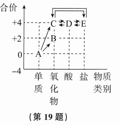 19. 价类图是以元素化合价为纵坐标、物质类别为横坐标绘制的图像,它能将散乱的科学知识联系在一起,有助于对科学问题的理解和整体认知。如图所示为含碳元素的物质的价类图,其中“→”表示物质间的转化关系。