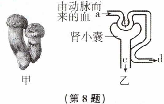 8. 云南被誉为“真菌王国”,其中松茸(如图甲所示)备受欢迎,其味道鲜美,营养丰富,具有极高的药用食疗价值。