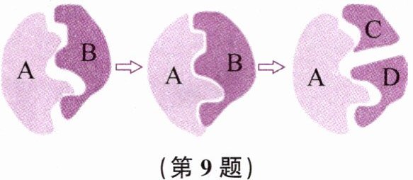 9. 在人体的消化系统中,酶催化脂肪分解的过程模型如图所示,A代表
