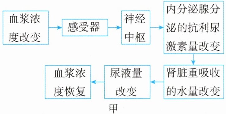 11. 人体内水的平衡对于健康有着重要意义。如图甲所示为人体水平衡调节过程的部分示意图。
