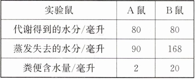 (3)B鼠 A鼠和B鼠代谢得到的水分相同,但B鼠通过蒸发和排粪失去的水均多于A鼠