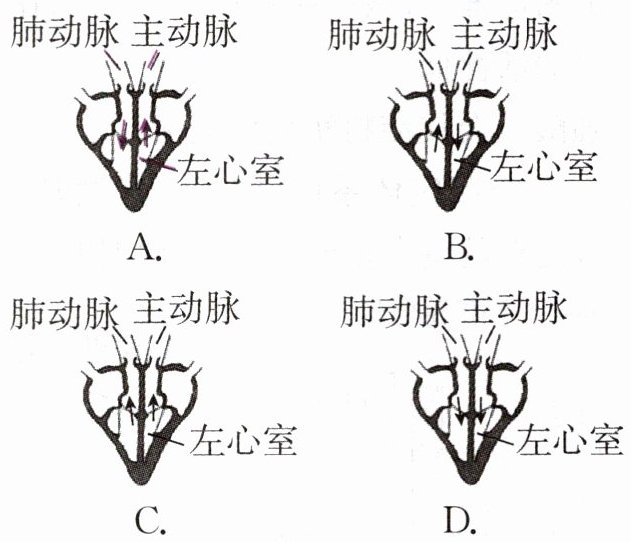8. (温州中考)下列选项中,能正确表示左、右心室收缩时心脏内血流方向的是 (