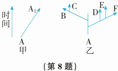 8. 如图所示,甲、乙分别代表对物种起源的两种看法,字母代表各种生物。请据图回答下列问题: