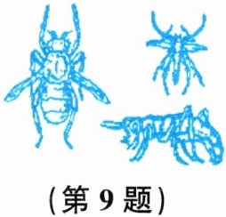 9. 某个海岛上经常刮大风,岛上有许多无翅或残翅的昆虫(如图所示),分析出现这种状况的原因。