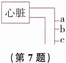 7. 2024年9月14日是第25个“世界急救日”,主题为“急救与运动”。掌握必备的急救知识,在关键时刻能救命。某小组的成员正在开展“急救”项目化学习,绘制了如图所示的人体心脏与血管的结构示意图。