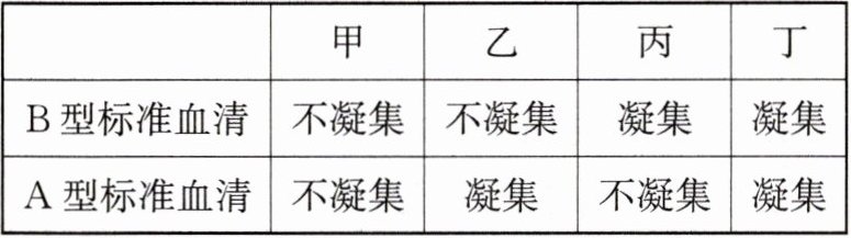 (4)甲、乙、丙、丁四名同学检验血型的结果如表所示。根据表格中的信息判断,四名同学的血型依次为