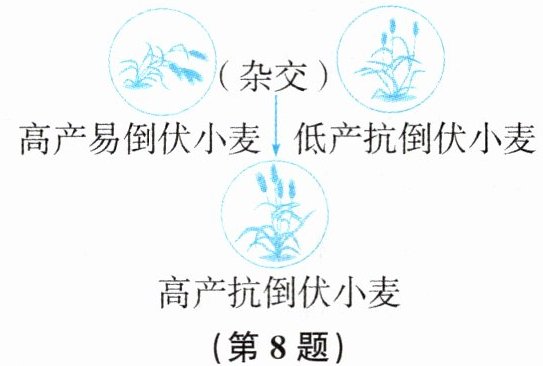 8. 如图所示为一个小麦新品种的培育过程,引起小麦的这种变异的根本原因是(