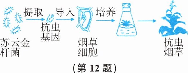 12. 21世纪是现代生物技术的世纪,大力发展现代生物技术是实现经济和技术跨越式发展的关键之一。如图所示为抗虫烟草的培育过程,下列叙述中,错误的是(