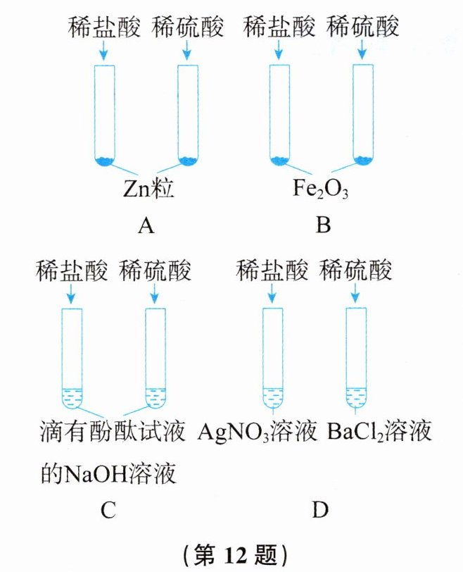 12. 小科为验证酸的化学通性,做了如图所示的4组实验。请分析并回答下列问题:
