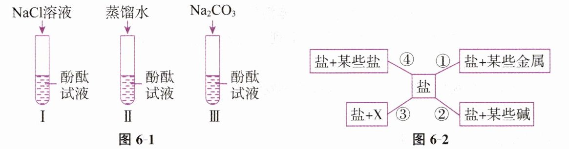 2. 及时归纳是学习科学的主要方法之一。如图 6-2 所示的结构图归纳了盐的四个方面的科学性质(图中编号①~④)。