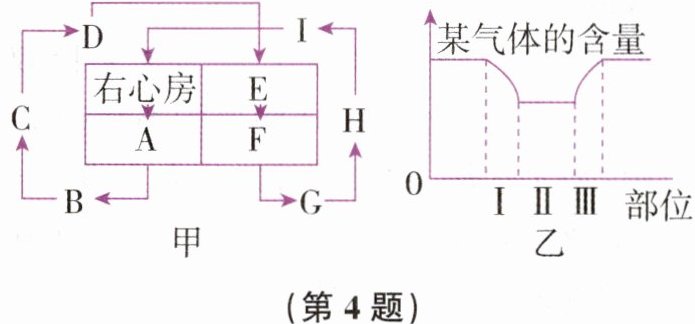 4. 如图甲所示为人体血液循环示意图,如图乙所示为气体含量变化曲线。
