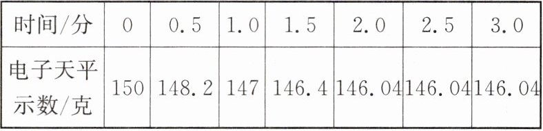 (1)从 2.0 分钟到 3.0 分钟,电子天平的示数没有发生变化