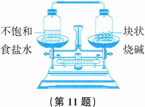11. 将一套如图所示的密闭装置放在天平上,使天平平衡,一段时间后出现的情况是(