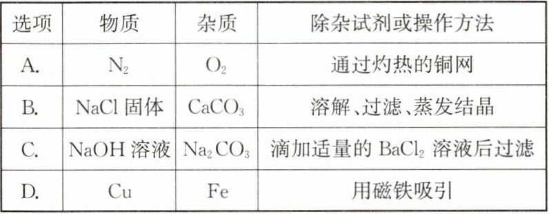 7. 除去物质中的少量杂质,下列所选试剂或操作方法中,不合理的是 (