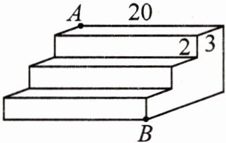 2. 如图是一个三级台阶,它的每一级的长、宽、高分别为$20\mathrm{dm}$,$3\mathrm{dm}$,$2\mathrm{dm}$,$A和B$是这个台阶两个相对的端点,$A$点有一只蚂蚁,想到$B$点去吃可口的食物,则蚂蚁沿着台阶面爬到$B$点的最短路程是____.