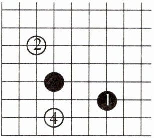 4. 如图,围棋盘放置在某个平面直角坐标系内,白棋②的坐标为$(-7,-4)$,白棋④的坐标为$(-6,-8)$,那么,黑棋①的坐标应该是____。